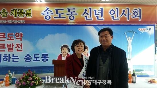 | ▲ 송도동개발자문위원회가 주최한 ‘송도동 신년 인사회’에 참석한 김정재 국회의원 예비후보 © 김정재후보 제공 |