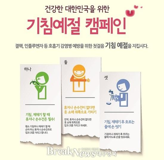 전국 인플루엔자 유행 주의보 발령, 손 씻기, 기침예절 등 개인위생준수
