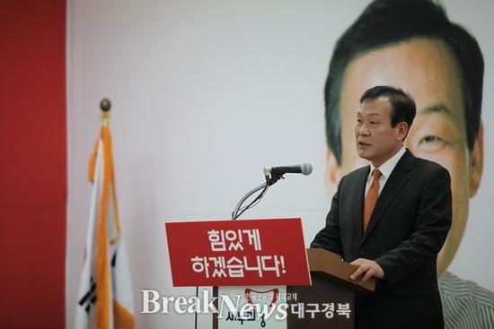 그는 이날 예비후보 등록을 한 뒤 자신을 지지하는 주민들과 함께 대구시당을 찾았다. 그는 “기쁜 마음으로 이 자리에 섰다”며 “싸우러 온 것이 아니라 화합과 통합을 하러 왔다”고 강조했다. 이어 “ 현재의 박근혜 정부와 과거의 이명박 정부가 힘차게 손을 잡아야 대구와 대한민국의 미래가 있고, 새로운 정권 창출도 가능하다”고 강조한뒤, “내가 상징적 역학을 담당하고 징검다리가 되겠다”고 강조했다.