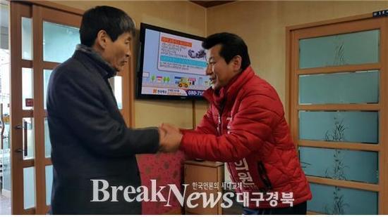 【브레이크뉴스 포항】김가이 기자= 이창균 새누리당 포항 북 국회의원 예비후보는 3일 새벽 장성동 삼도사거리 출근길 아침인사에 이어 장량동 통장협의회 모임에 참석했다.