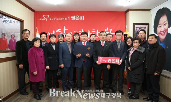 또한 “북구를 창조경제 중심도시로 만들기 위해서는 ICT 전문가인 권은희 의원이 반드시 필요하다”고 강조하며 “3D프린팅 종합지원센터, 드론센터, 첨단공구기술지원센터 등 권은희 의원이 임기 동안 유치한 국책사업을 성공적으로 추진하고, 중단 없는 북구 발전을 위해서 이 분야에 대해 가장 잘 아는 권은희 의원을 지지한다.”고 전했다. 이어 “대구가 다른 지역에 비해 발전이 더딘 이유 중에 하나는 초선 국회의원이 많다는 것”이라고 강조하며, “산적한 북구 현안을 해결하고, 북구 발전을 위해 더 큰 목소리를 내기 위해서는 힘 있는 재선 국회의원의 역할이 무엇보다 중요하다”며 권은희 의원의 재선에 힘을 실었다. 같은 날, 같은 지역구에 출마하는 하춘수 예비후보를 지지하는 150여명의 북구 갑 새누리당 당원 및 당직자들의 기자회견도 열렸다. 이들은“믿고 맡길 북구갑의 진정한 일꾼, 북구갑의 미래를 위해 우리는 하춘수를 지지한다”는 내용의 지지선언문을 통해 “대구 북구갑은 발전하기보다는 오히려 예전보다도 도태되고 있는 것이 우리 지역의 안타까운 현실이라고 말했다. 이어 우리 앞에는 지역의 발전을 선택할 것인가 아니면 또다시 퇴보의 길을 걸을 것인가의 기로에 서있다”며 “44년간 실물경제의 전문가로서 그 능력과 역량을 인정받은 하춘수 예비후보는 말단 행원에서 은행장에까지 오른 입지전적인 인물로서 탁월한 리더십과 현장경영 그리고 소통을 바탕으로 대구은행을 DGB금융그룹으로 성장시켰다”고 강조했다.