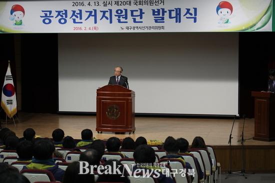 【브레이크뉴스 대구】이성현 기자= 제20대 국회의원선거를 앞두고 위법행위 예방 및 공정한 단속활동을 다짐하는 공정선거지원단 발대식이 4일 오후 대구시교육연구정보원 시청각실에서 열렸다.