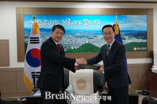 입법 및 법률고문은 경산시의회 입법 및 법률고문 조례에 의거 경산시의회 의원들이 조례입안 및 의안심사 등 원활한 자치입법 활동 능력배양과 법률적 사안처리 등 전문적인 자문과 지원을 위한 실질적인 입법 대처능력을 강화하기 위함이다. 이천수 의장은 “지방의회의 역할이 날로 중요해 지고 있어 입법 및 법률 고문 위촉을 통해 정책 발굴 등 의원들의 자치입법 능력이 향상되어 활동이 더욱 활성화 될 것으로 기대 한다”고 말했다. 한편 서우선 박사는 행정학박사 출신으로 제5회 입법고시 합격 후 국회사무처 의전계장, 국회내무위원회 입법조사관 등 국회실무과정을 두루 거친 입법전문가이며 현재 한국산업기술원 지방자치연구소장을 맡아 왕성한 활동을 하고 있다. <저작권자 ⓒ 브레이크뉴스 대구경북 무단전재 및 재배포 금지>