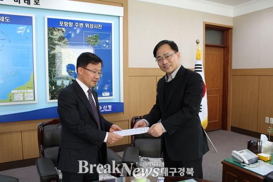 | ▲ 포항지방해양수산청을 방문해 포항-울릉간 여객선의 입·출항 시간을 조정해 줄것을 요청했다. © 허대만후보 제공 |