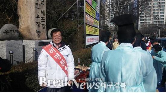 【브레이크뉴스 포항】김가이 기자= 새누리당 포항 북 허명환 예비후보는 지난 22일 정월대보름을 맞아 북구 소재 우창동 동제에 참가해 올 해 포항의 풍요와 안녕을 기원하며 달집태우기 등 대보름 행사에 참여해 주민들과 덕담을 나누고 화합의 장을 함께 했다고 23일 밝혔다. | ▲ 우창동 동제에 참여해 헌주하는 허명환 후보 © 허명환후보 제공 |