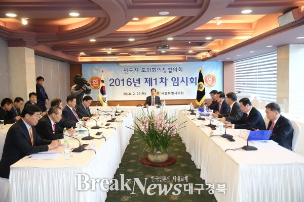 【브레이크뉴스 대구】이성현 기자 = 이동희 대구시의회 의장은 2월 25일(목) 서울 AW컨벤션센터 하림각 아이리스홀에서 개최된 2016년도 전국시·도의회의장협의회 제1차 임시회에 참석하여 시·도의회의 주요현안사항을 협의하고 제출안건을 심의하였다.