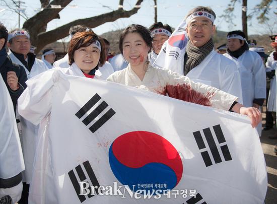 【브레이크뉴스 포항】김가이 기자= 새누리당 포항 북 김정재 국회의원 예비후보는 1일 북구 송라면 대전리에 위치한 3.1만세촌(두곡 숲)에서 열린 제97주년 3.1절 만세운동 기념식에 참석해 3.1절의 정신을 되새겼다.