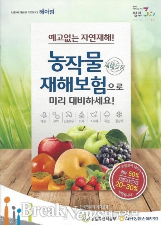 【브레이크뉴스 포항】김가이 기자= 포항시(시장 이강덕)가 지난달 22일부터 ‘2016년 농작물재해보험’ 가입 접수를 시작했다고 2일 밝혔다.