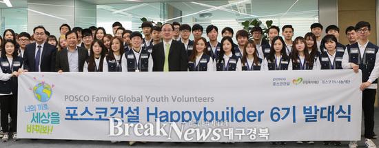 【브레이크뉴스 포항】김가이 기자= 포스코건설(사장 한찬건)이 지난 4일 대학생봉사단 해피빌더(Happy Builder) 6기 총 50명(남 27, 여 23)을 최종 선발하고 올해 활동을 시작하는 발대식을 가졌다고 7일 밝혔다.