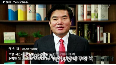 | ▲ 허명환 후보 개소식 축하 영상메세지를 전하는 원유철 새누리당 원내대표 © 허명환후보 제공 |
