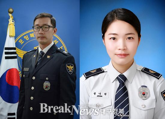 | ▲ (좌)순경 심규범 (우)순경 정나원 © 포항북부경찰서 제공 |
