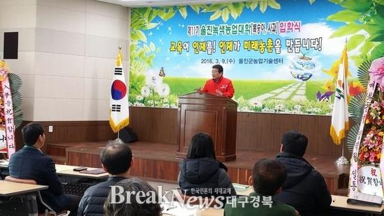 오후에는 매화면 농업기술센터에서 열린 울진녹색농업대학 입학식에 들러 복숭아, 사과 영농기술을 배우기 위해 입학한 주민들에게 격려성 축사를 했다.