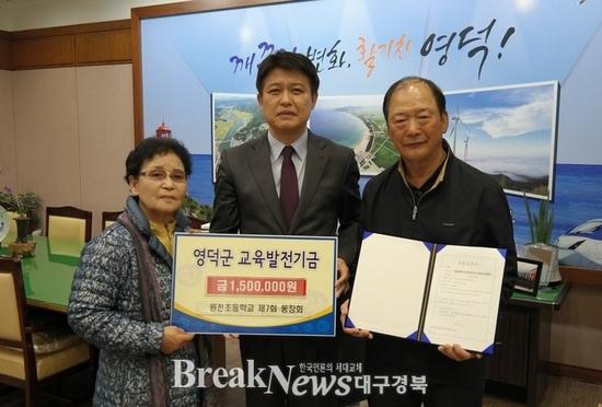 【브레이크뉴스 영덕】박영재 기자= (재)영덕군교육발전위원회(이사장 이희진, 이하 (재)영교위)가 지난 16일 원전초등학교 제7회 동창회(회장 임춘자)에서 인재양성을 위한 교육발전기금으로 150만원을 기탁해 주위를 훈훈하게 하고 있다고 17일 밝혔다.