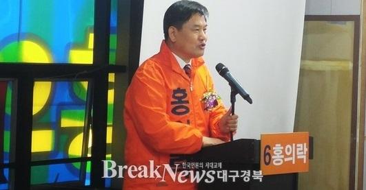 【브레이크뉴스 대구】이성현 기자= 더불어민주당을 탈당하고 무소속으로 북구 을에 출마한 홍의락 의원이 26일 태전동에 위치한 자신의 선거사무실을 개소했다.