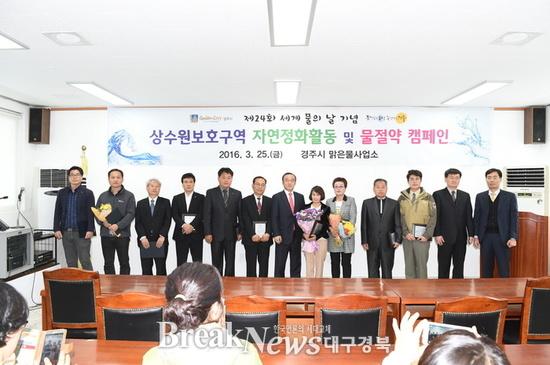 【브레이크뉴스 경주】김가이 기자= 경주시(시장 최양식)는 UN이 정한 ‘제24회 세계 물의 날’을 기념해 지난 25일 보덕동주민센터에서 상하수도 발전에 공로가 많은 공무원 및 관계자에게 유공자 표창을 했다고 28일 밝혔다.