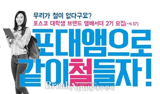 【브레이크뉴스 경북】김가이 기자= 포스코(회장 권오준)가 ‘2016 포스코 대학생 브랜드 앰배서더’를 모집한다고 28일 밝혔다.