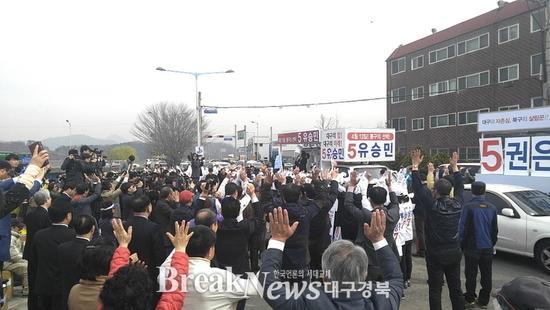| ▲ 류성걸 유승민 권은희 후보의 공동 출정식 장면 © 이성현 기자 |