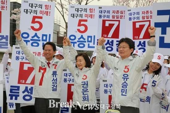 【브레이크뉴스 대구】이성현 기자= 31일 아침 9시 공항교 인근에서 공동으로 출정식을 갖고 본선거 운동을 시작한 유승민, 류성걸, 권은희 후보가 본격적인 세 불리기에 나섰다. 유승민 후보는 이날을 시작으로 동구와 북구는 하나라고 선언했다.필요하다면 공동 공약도 제시할 것이라며 한 식구임을 강조했다.