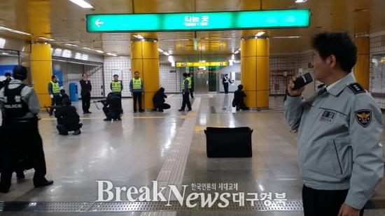 【브레이크뉴스 대구】이성현 기자= 대구남부경찰서(서상훈)는 남구 대명동 도시철도공사 현충로역에서 최근 벨기에 브뤼셀 공항 폭발물 테러 및 북한 도발과 관련해 대 테러 유관기관 합동훈련을 30일 실시하였다.