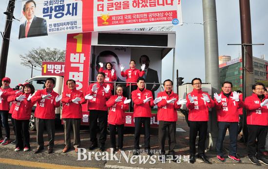 【브레이크뉴스 포항】김가이 기자= 박명재 새누리당 포항남·울릉 후보는 지난달 31일 아침 형산교차로에서 지역의 전 도·시의원과 선거운동원, 지지자 등과 함께한 출근인사를 시작으로 고향 장기에서 첫 유세를 벌인데 이어 죽도시장 지원유세, 선거사무소 앞 ‘힘찬 출발! 출정식’ 등 숨 가쁜 선거운동 첫날 일정을 소화했다고 1일 밝혔다.