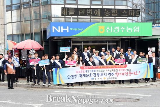 【브레이크뉴스 경주】김가이 기자= 경주시(시장 최양식)는 전국 교통사고 발생율 및 교통사고 사망자 수 전국 1위의 불명예를 씻고 교통사고 예방과 안전한 교통문화 정착을 위해 5일 ‘교통사고 줄이기 홍보 캠페인’을 실시했다고 5일 밝혔다.
