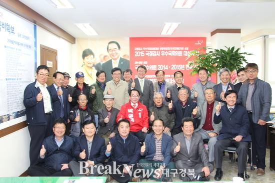 | ▲ 박명재 후보 지지를 위해 선거사무소를 찾은 중동고 총동문회 회원들 © 박명재후보 제공 |