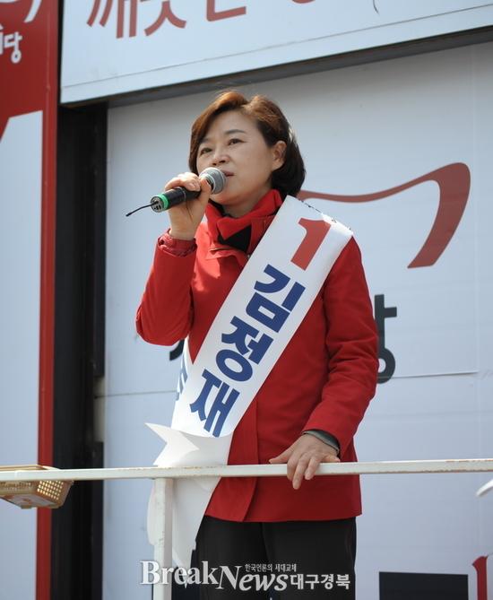 흥해시장 유세에서는 “영일만항에 들어서는 국제 터미널여객선 부두를 최대한 빨리 건설하고 영일만항을 해양 로봇메카로 만들면 흥해시장은 그야말로 ‘대박’이 터질 것”이라며 “박근혜정부의 지원을 받는 힘 있는 후보, 김정재를 찍어달라”고 호소했다.