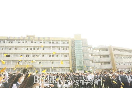 【브레이크뉴스 대구】이성현 기자= 대구수성경찰서(서장 손영진)는 14일 오후 학교폭력 근절을 위한 ‘약속한 DAY’를 맞이하여 중앙고등학교에서 학교폭력근절‘희망 비행기 날리기’ 행사를 실시하였다고 전했다.