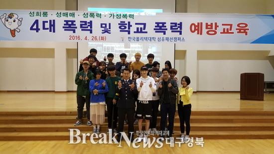 【브레이크뉴스 대구】이성현 기자= 대구동부경찰서(서장 김봉식)는 26일 오전 봉무동 소재 한국폴리텍대학 섬유패션캠퍼스를 방문하여 1,2학년 350여명을 대상으로 성폭력 예방교육을 실시하였다고 밝혔다.