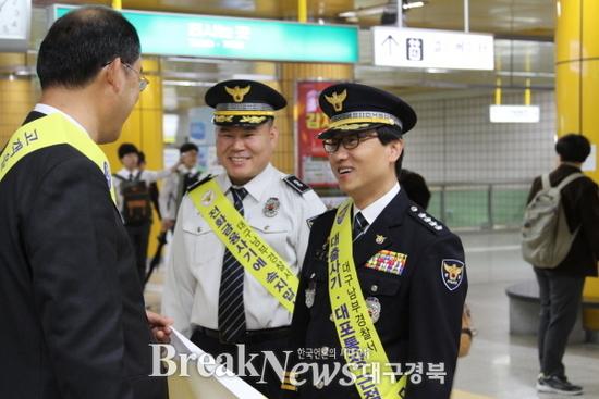 【브레이크뉴스 대구】이성현 기자 =대구남부경찰서(서장 서상훈)는 3일 오전 지하철 현충로역에서 서민 생활경제를 심각하게 침해하는 보이스피싱ㆍ대출사기 피해 예방 홍보활동을 위해 금융기관(대구은행)직원 35명과 경찰관 40명이 합동으로 캠페인을 개최했다.