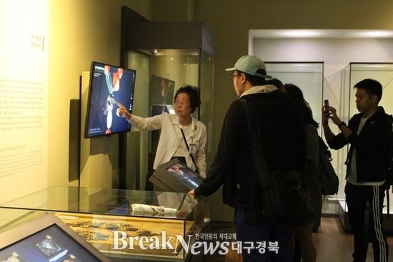 프로그램 참가자들은 국립경주박물관의 중요 전시품을 통해 신라의 역사와 문화를 이해할 수 있도록 마련된 관람 코스를 따라 한 시간 반 정도 전시 해설을 듣는다.