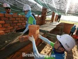 ▲ 해외 집짓기 봉사활동에 참여 중인 비욘드 © 포스코 제공