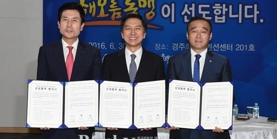경주시는 30일 경주 하이코에서 김기현 울산시장, 이강덕 포항시장, 최양식 경주시장 등 20여 명이 참석한 가운데 ‘해오름 동맹 상생협력 협약’을 체결했다고 30일 밝혔다.