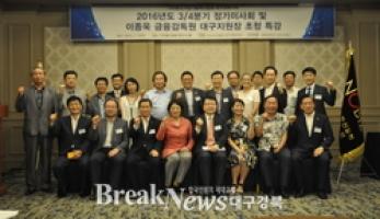 【브레이크뉴스 대구】이성현 기자=이노비즈협회 대구경북지회는 7월 13일(수) 인터불고 호텔에서 2016년도 3.4분기 정기이사회와 금융감독원 대구지원(원장 이종욱) 초청 특강을 개최하였다고 밝혔다.