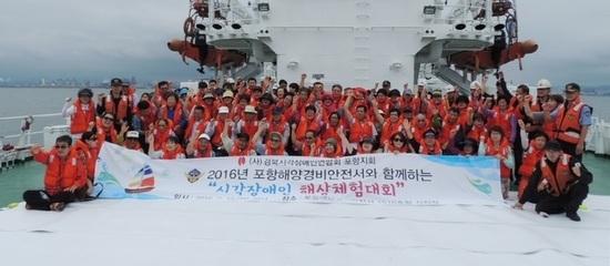 포항해경에 따르면 ‘정부3.0’ 취지에 맞춰 경북시각장애인연합회 소속 시각장애인과자원봉사자 등 100여 명을 1천500톤급 경비함정 1510함으로 초청해 인근 영일만 일대 해상에서 해상 안전 체험 행사를 가졌다.