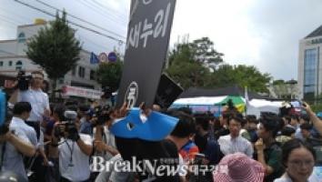 우여곡절 끝에 회의를 마친 새누리당 원내 지도부와 국방 관계자들이 청사를 나와 군청 전정으로 향하자, 마당에서는 “믿었던 새누리당에 배신을 당했다”며 새누리당의 장례식을 거행하고, 버스에 오르려는 정 대표 일행 등을 잠시 가로막으며 사드 배치 철회를 외쳤다. 이들 대표단은 약 10여분간 주민들에 싸여 있다가 타고 온 버스를 통해 성주군청을 빠져나갔다. <저작권자 ⓒ 브레이크뉴스 대구경북 무단전재 및 재배포 금지>