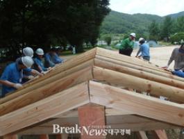 | ▲ 한옥목수 과정의 서까래 시공 실습 © 포스코 포항제철소 제공 |
