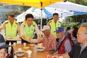 【브레이크뉴스 포항】김가이 기자= 이강덕 포항시장이 27일 창포경로당에서 남포항 라이온스클럽(회장 김창현)이 주최하고 우창동 지역사회보장협의체(공동위원장 정경락, 김창현)가 후원한 ‘사랑의 짜장면 나누기’행사에 참여해 지역 어르신 300여명을 대상으로 배식 봉사활동을 펼쳤다.