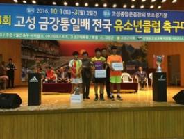 제4회 고성 금강통일배 전국 유소년 축구클럽 대회는 유소년 축구선수들의 심신단련과 기량향상을 위하여 지난 10.1일부터 3일까지 고성종합운동장 일원에서 펼쳐진 대회로 고령FC는 15명의 선수로 구성된 팀으로 출전하였다.