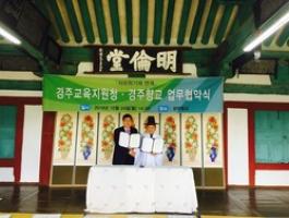 【브레이크뉴스 경주】김가이 기자= 경주교육지원청(교육장 구종모)은 24일 경주향교와 경주향교 명륜당에서 자유학기제 활성화를 위한 업무협약을 체결했다고 24일 밝혔다.