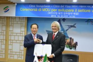 【브레이크뉴스 영천】김가이 기자= 영천시(시장 김영석)는 31일 시청 영상회의실에서 영천와인산업발전을 위해 이탈리아 치타 델 비노 협회(회장 Floriano Zambon)와 업무협약을 체결했다고 밝혔다.