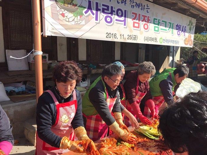 공단에 따르면 청정누리봉사단 자원봉사자들은 지난 18일부터 연말까지 다문화시설, 지역아동센터, 장애인시설 등을 찾아 배추씻기에서 부터 절이기, 김칫속만들기, 김치 포장, 김장배달 등을 돕고 있다.