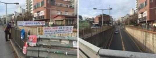 | ▲ 황성동 새해맞이 불법현수막 철거 전후 모습(제2지하차도 주변) © 경주시 제공 |