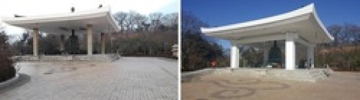 | ▲ 성덕대왕신종이 걸려있는 종각, 보강 전(좌), 후(우) 모습 © 국립경주박물관 제공 |