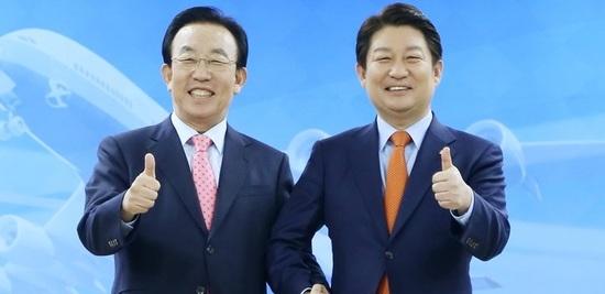 | ▲ 김관용 경북도지사와 권영진 대구시장이 대구공항 이전 관련 공동의 목소리를 내며 통합이전에 대한 불협화음 차단에 나섰다 ⓒ 대구시 제공 |