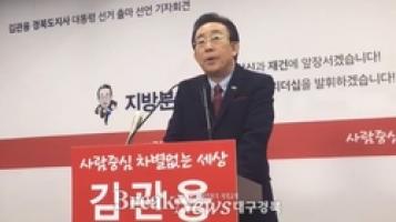 한편, 김 지사는 출마선언 뒤 곧바로 대구로 내려와 영남지역 여론의 봉수대라 할 수 있는 서문시장을 찾을 예정이다. 다른 모든 대선 주자들과 마찬가지로 그 역시 서문시장을 여론의 최전선으로 삼은 것으로, 자신의 대권 도전이 자신만의 문제를 넘어 대구경북의 정치적 자존을 회복하기 위함이라는 이미지를 알리기 위함이다.