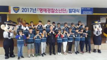 【브레이크뉴스 포항】김가이 기자= 포항남부경찰서(서장 오동석)는 지난 19일 오후 4시 4층 대회의실에서 경찰서장, 여성청소년과·계장 등 경찰관 10명, 연일초등학교, 대이초등학교 지도교사 및 신규 명예경찰소년단원 22명 등 총 32명이 참석한 가운데 2017년 명예경찰소년단 발대식을 개최했다.