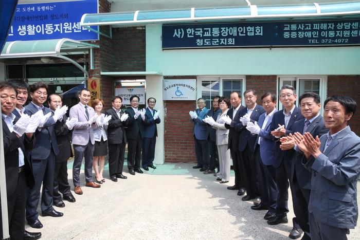 【브레이크뉴스 청도】김상호 기자= 청도군(군수 이승율)은 31일 한국교통장애인협회 청도군지회에서 이승율 청도군수, 기관 및 장애인단체장 등 내빈 100여명이 참석한 가운데 ‘교통약자 이동지원센터 개소식’을 개최했다.
