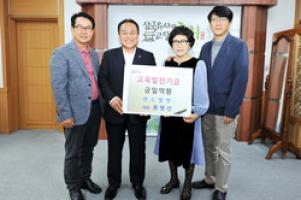 ㈜영도벨벳 류병선 대표는 “농촌지역의 열악한 교육여건 개선을 위해 애쓰는 모습에 힘을 보태고 싶어 또 다시 교육발전기금을 기탁하게 되었다”고 말했다.