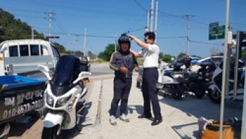 포항북부서에 따르면 교통사고에 취약한 이륜차의 특성상 안전모는 생명을 지킬 수 있는 유일한 수단임을 강조하며 안전모를 직접 씌어주며 배달업소 종사자들에게 신호위반, 인도주행 등 주요법규위반에 대한 사고의 위험성을 설명하고 이륜차 교통법규 준수를 당부했다.
